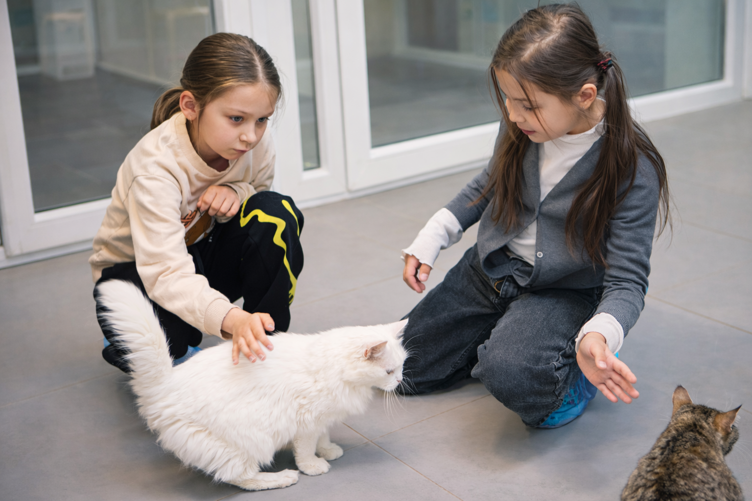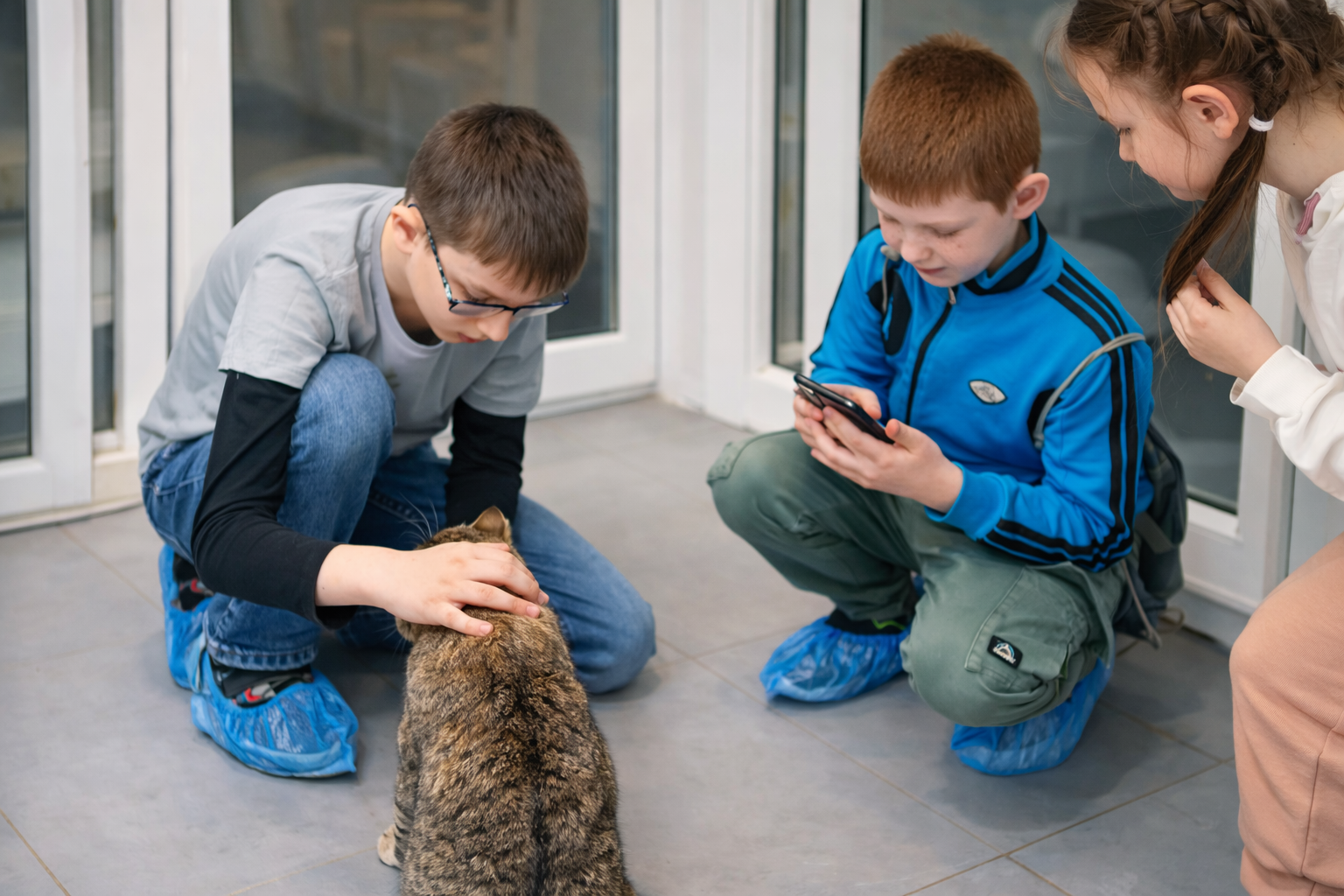 Дети с интересом рассматривали щенков и котят, общались с ними и учились заботе о животных.